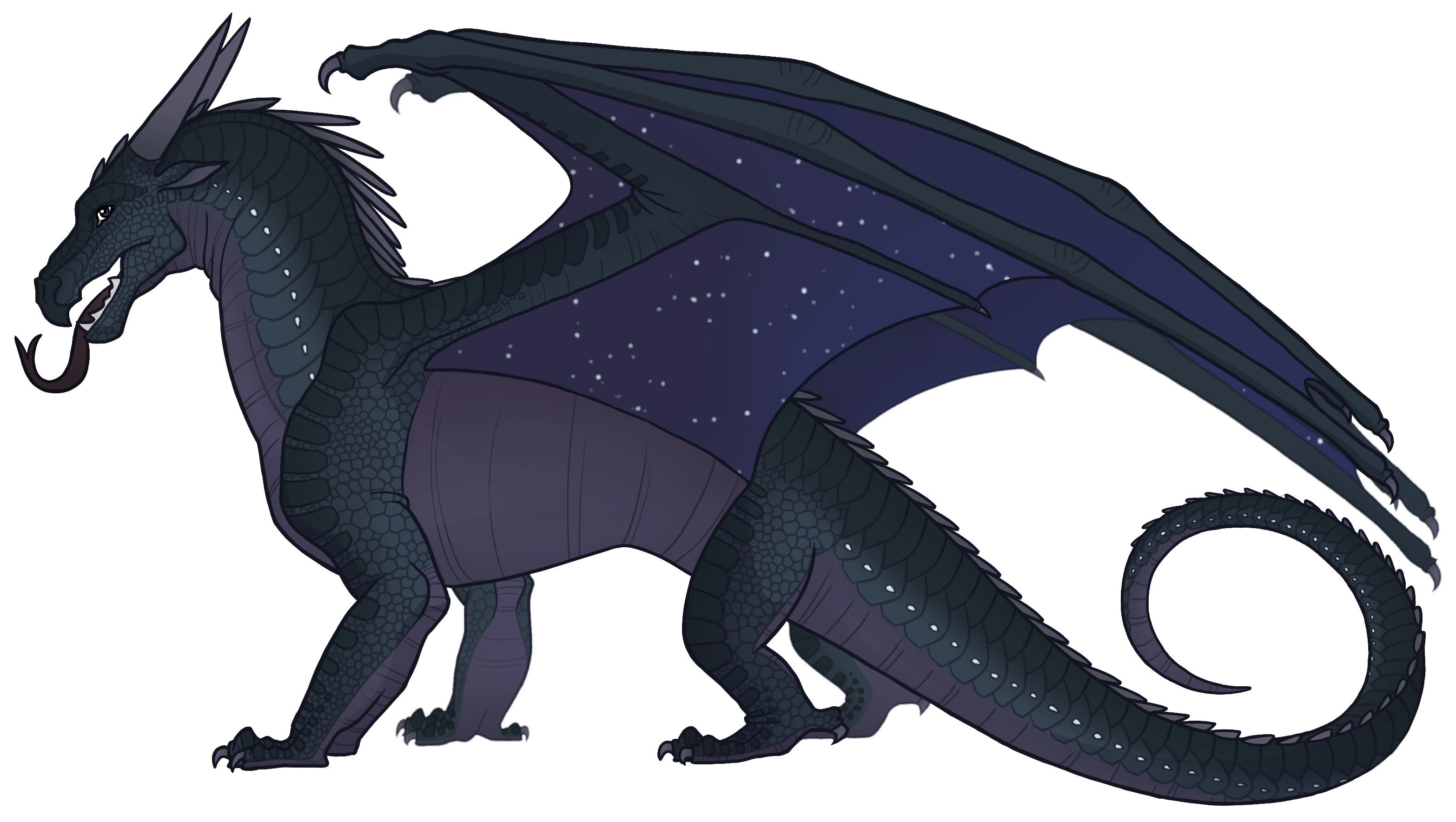 Clearsight had large dark[1] purple eyes,[event 1] black scales,[2] and black wings.[3] She was beautiful[1] and sleek.[4]